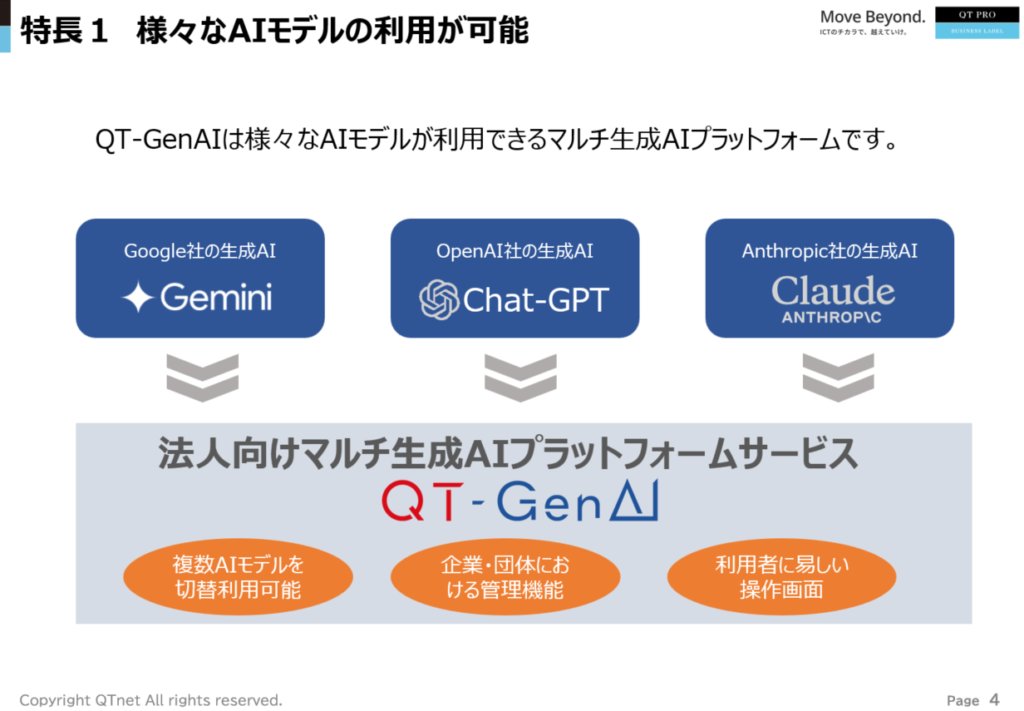 QT-GenAI -複数AIモデルが使用できる法人向けマルチ生成AIプラットフォーム –